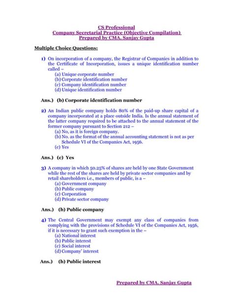 Read Online Company Secretarial Practice Answers Epub